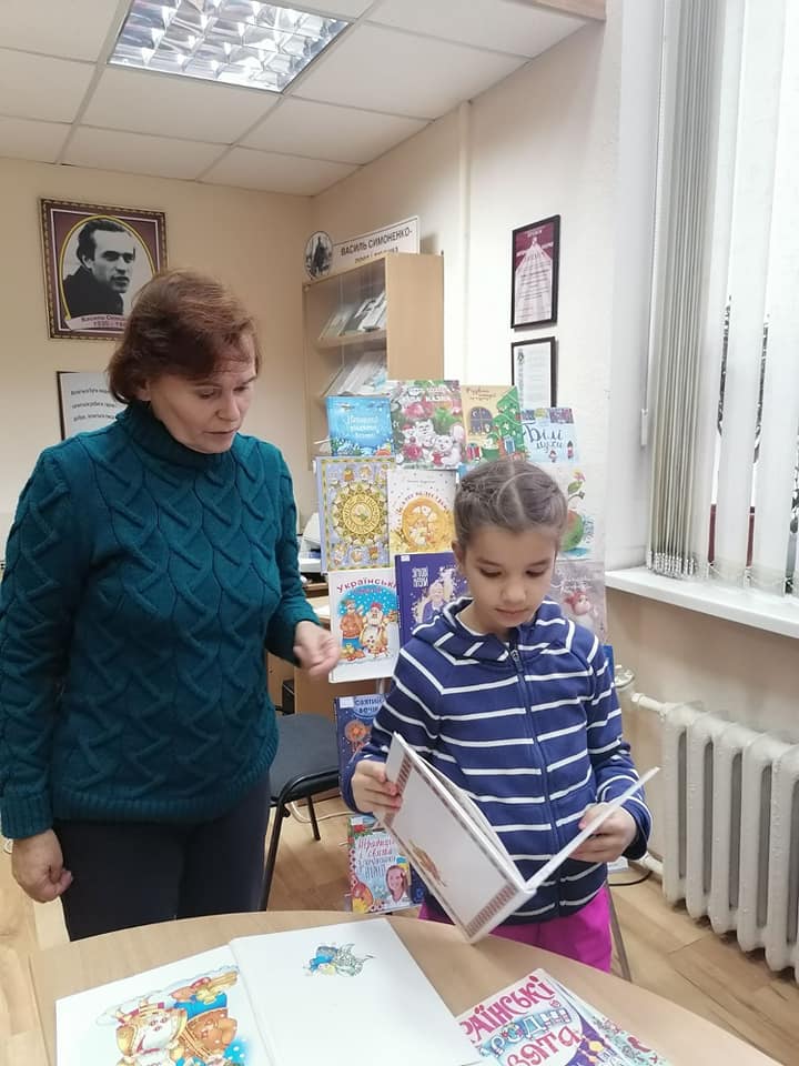 Читання книг з виставки "Зимові книжки під ялинку"